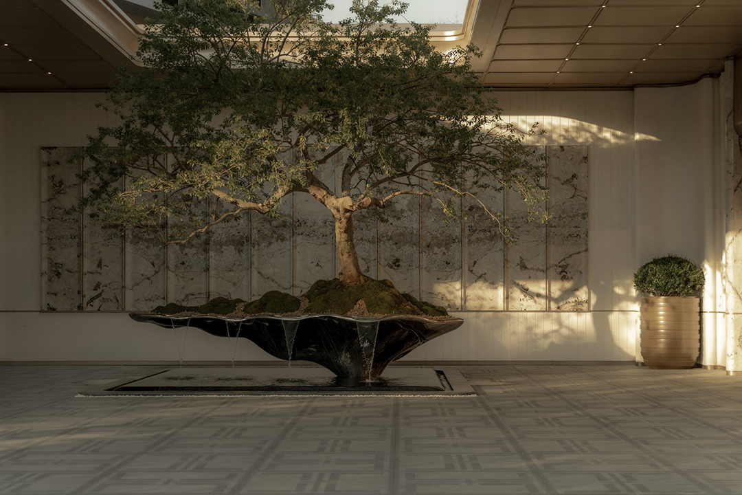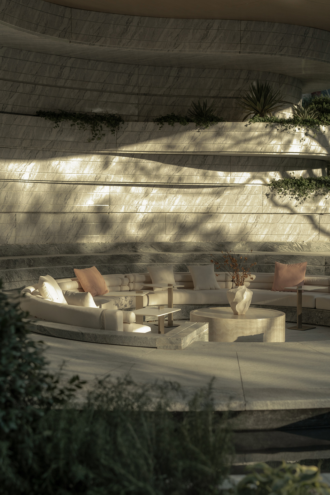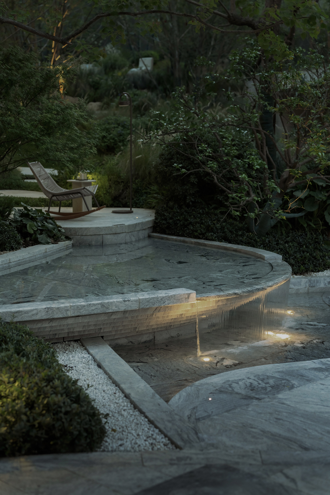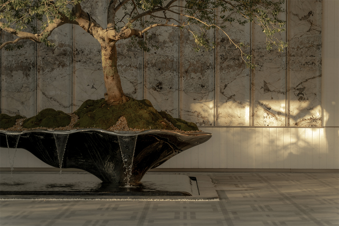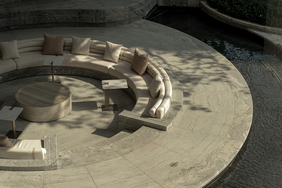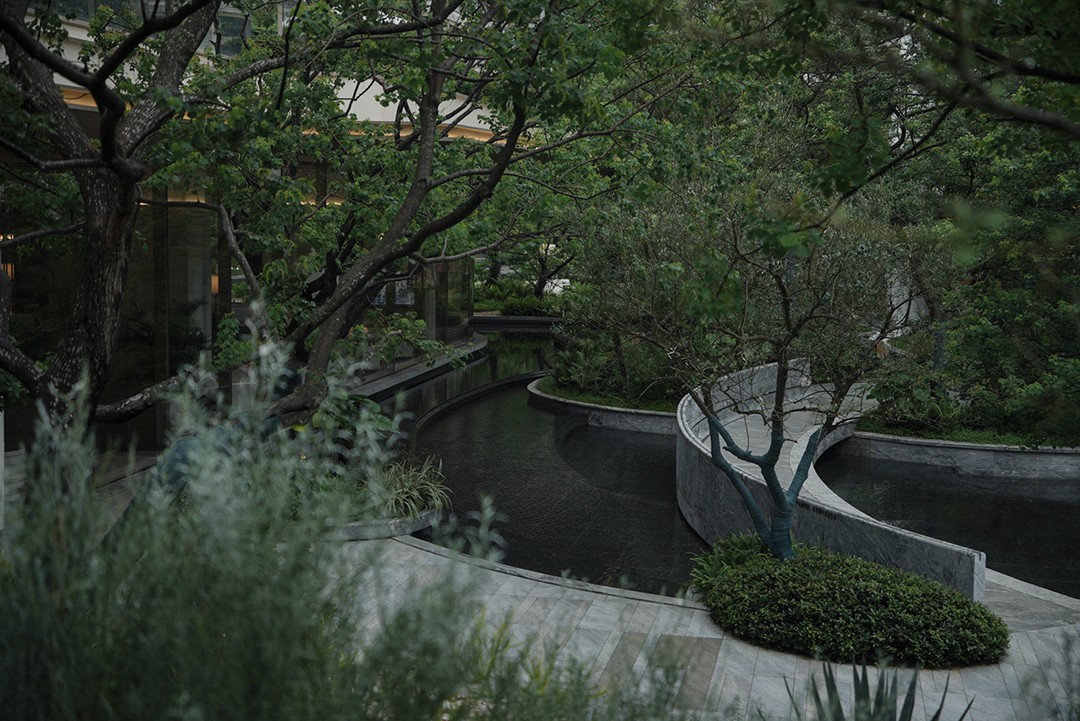 The floating bridge primarily features Viscount White granite, accented with Babeli Red marble, striking a balance between raw nature and refined elegance. It offers a healing experience of walking into the wilderness, while every view reveals a touch of subtle sophistication.