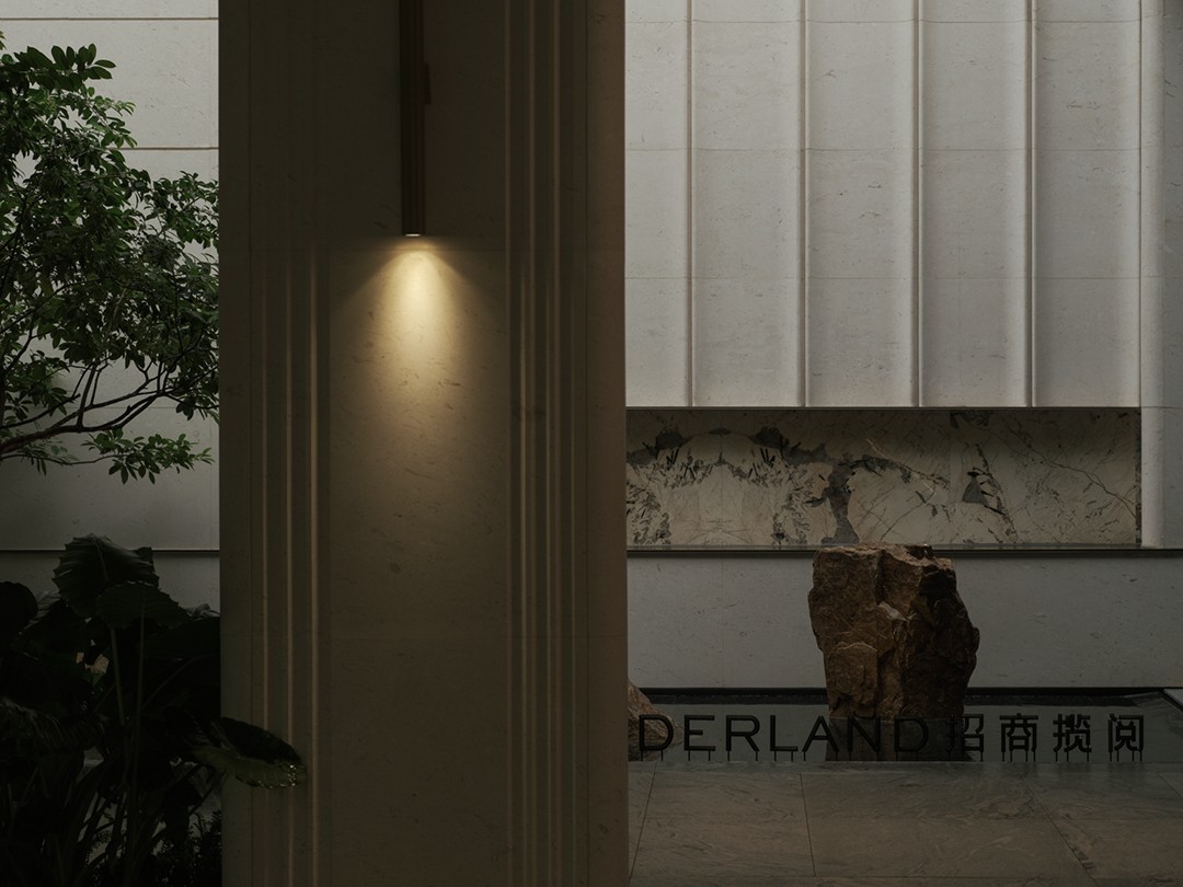 材料质感的统一,石材搭配艺术灯具为穿林入涧谱下最具仪式感的序章。