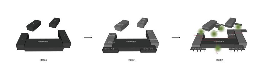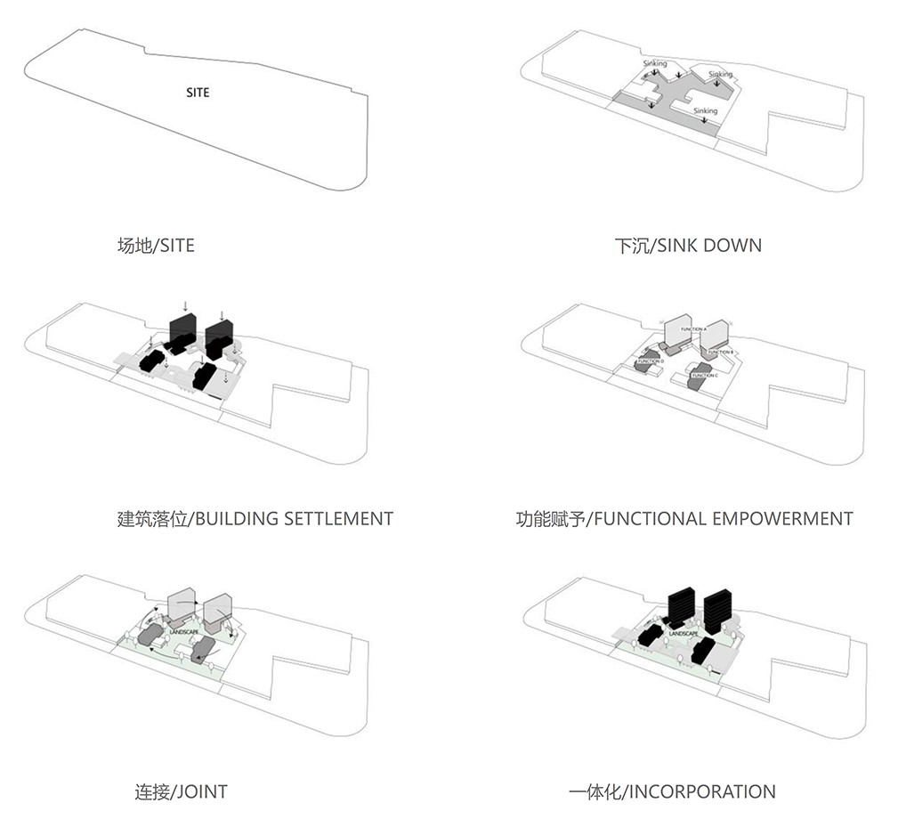 The scattered leisure spaces are combined with grass steps, so that people will not forget their yearning and expectation for vacation life even in their busy lives.