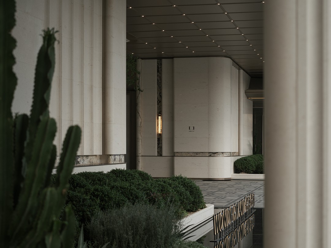 潘多拉大理石点缀门厅立面,结合精细化打造方式,让繁华、神秘席卷生活。