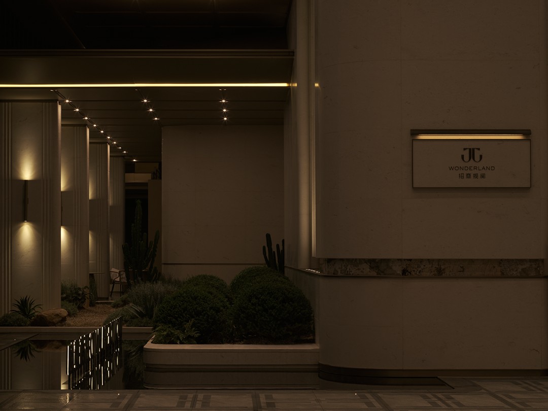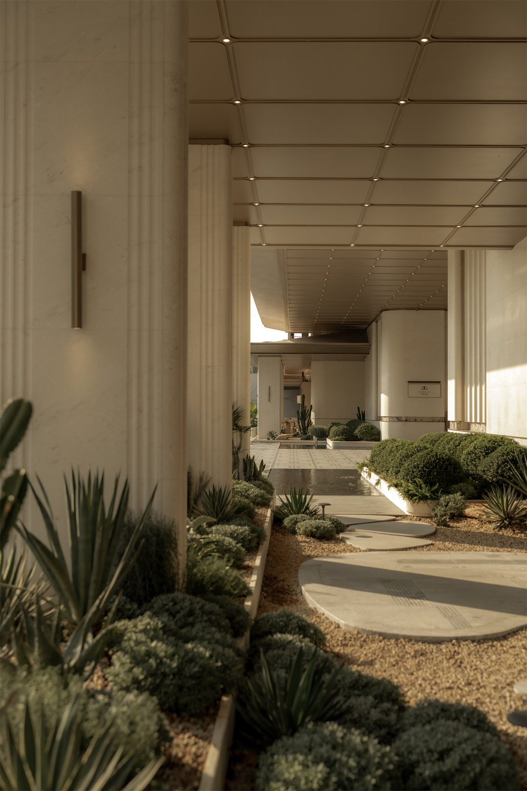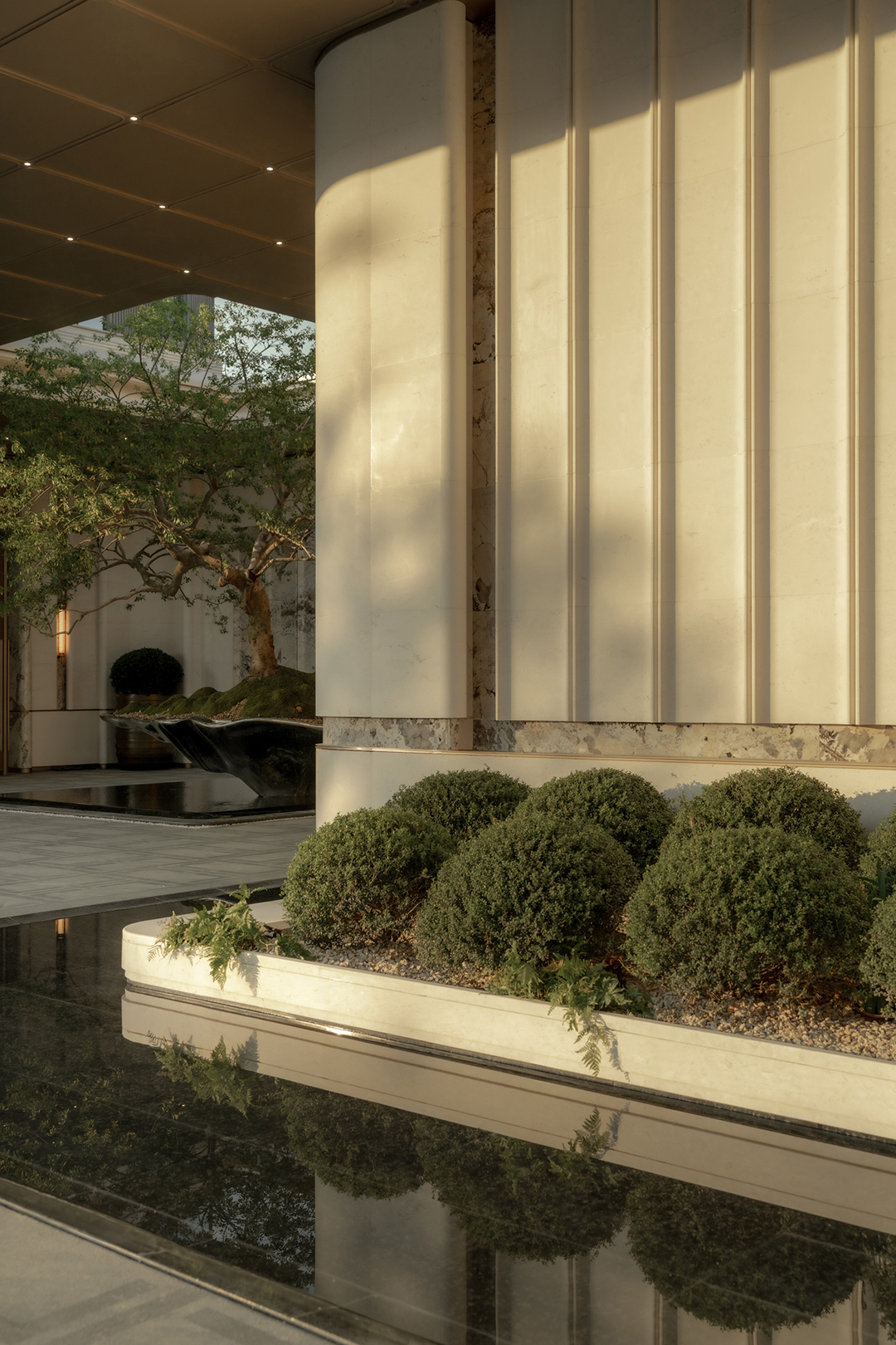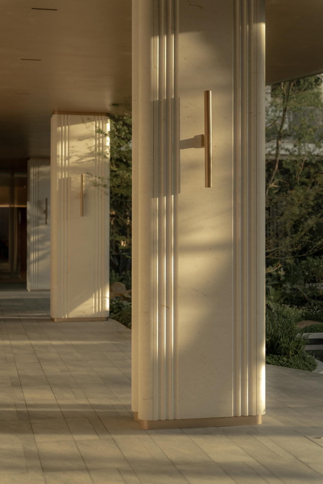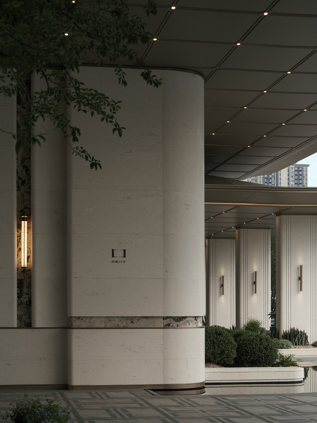 对称水景和艺术景墙提升归家仪式感,门厅与两侧回廊衔接商业共同营造轻奢度假式的城市界面,一面烟火长沙,一面繁华都市,于此我们构建出一片专属的奢享空间,理想生活在此启程。