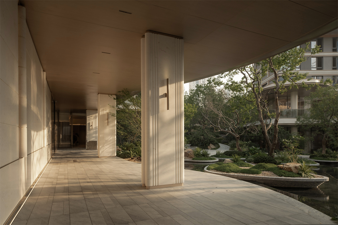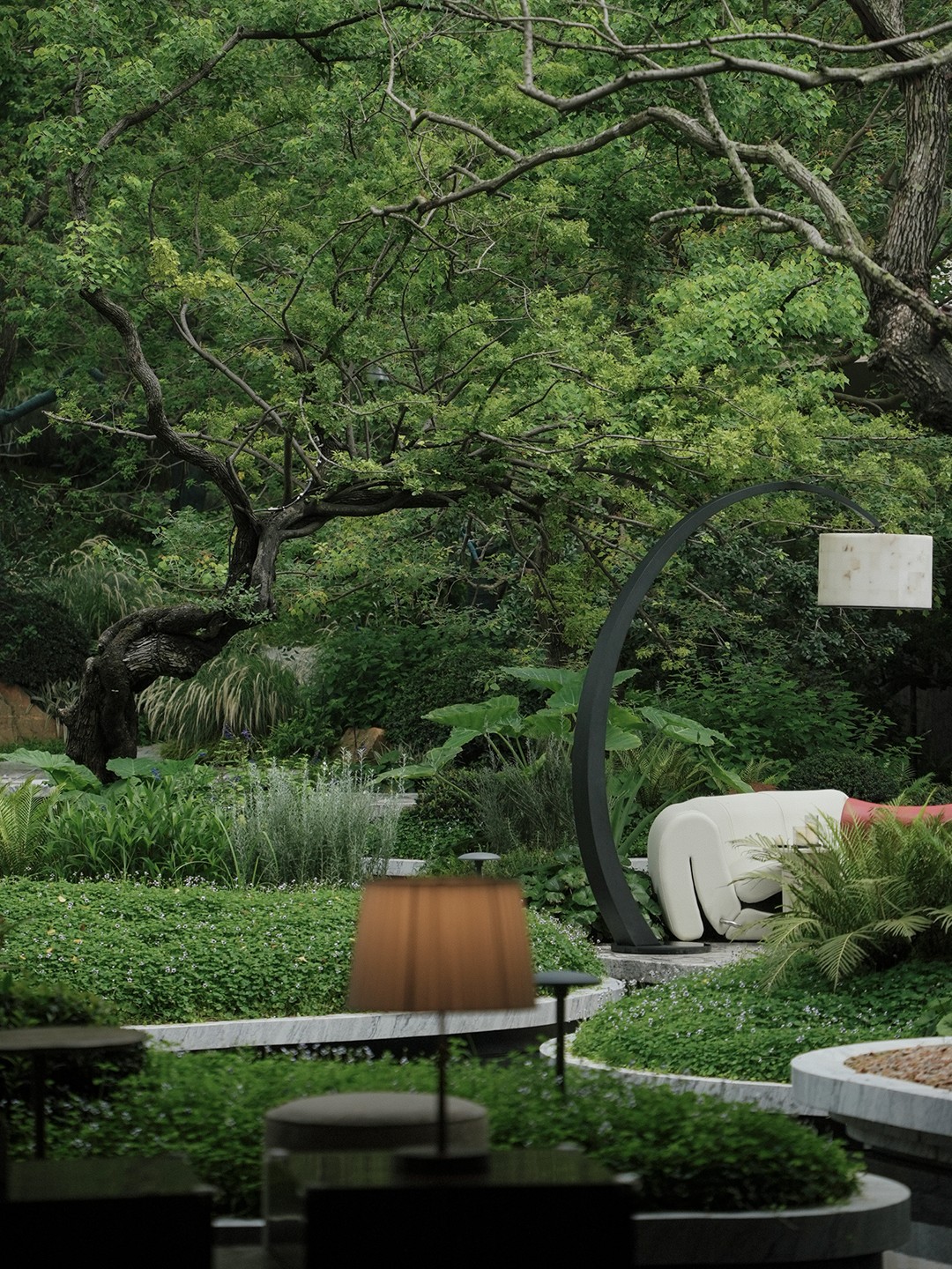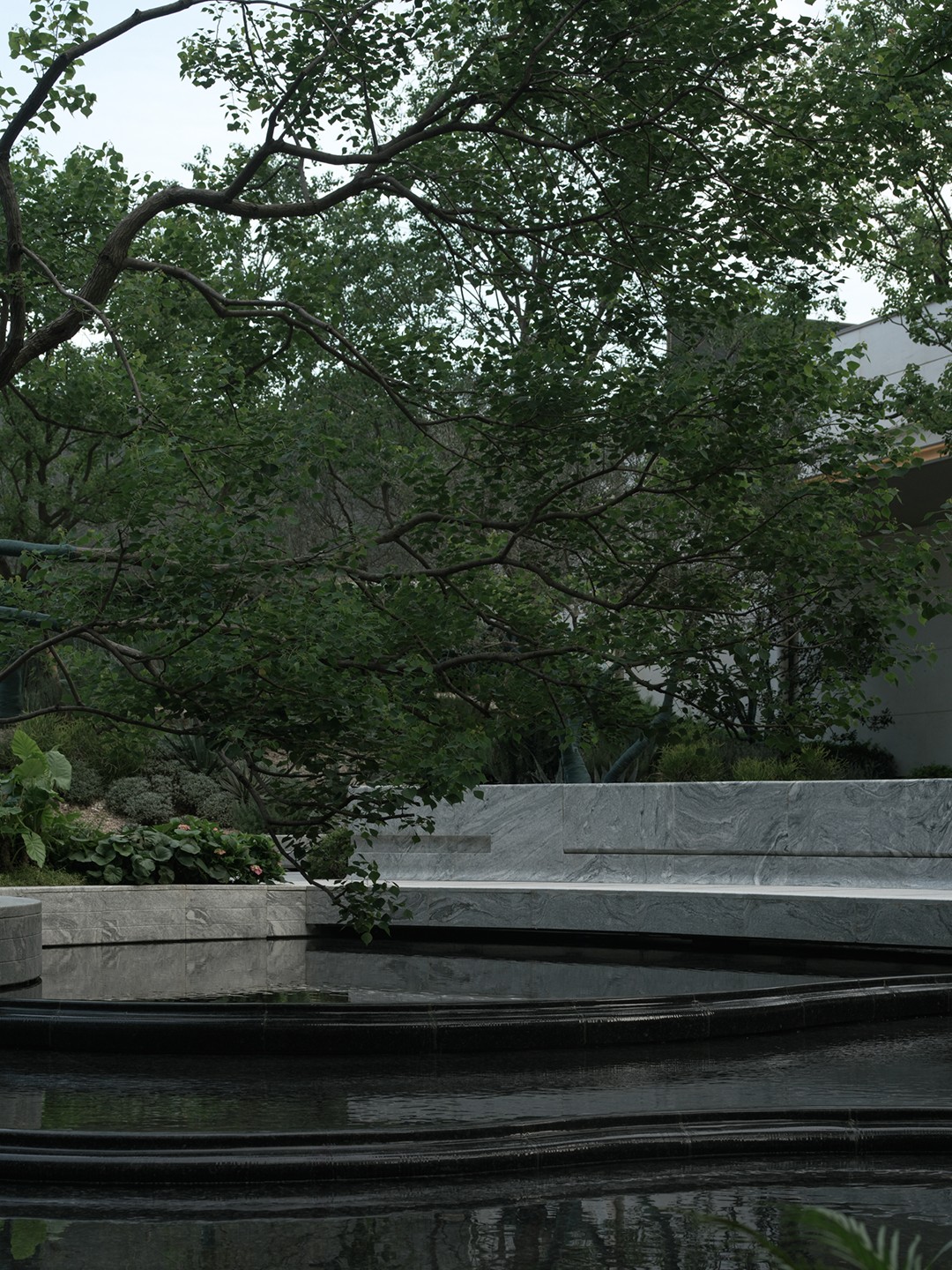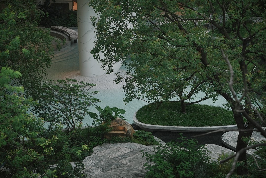 转角处皆是生活的温度,静置的景石仿佛在喃喃低语着场地的故事,在光影与空间中,描摹出理想生活的轮廓。