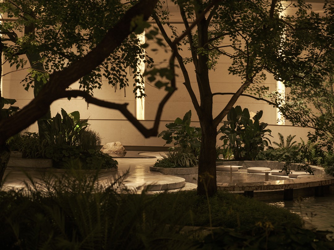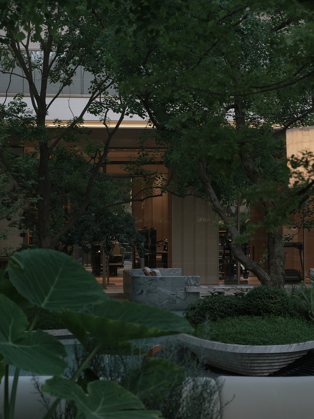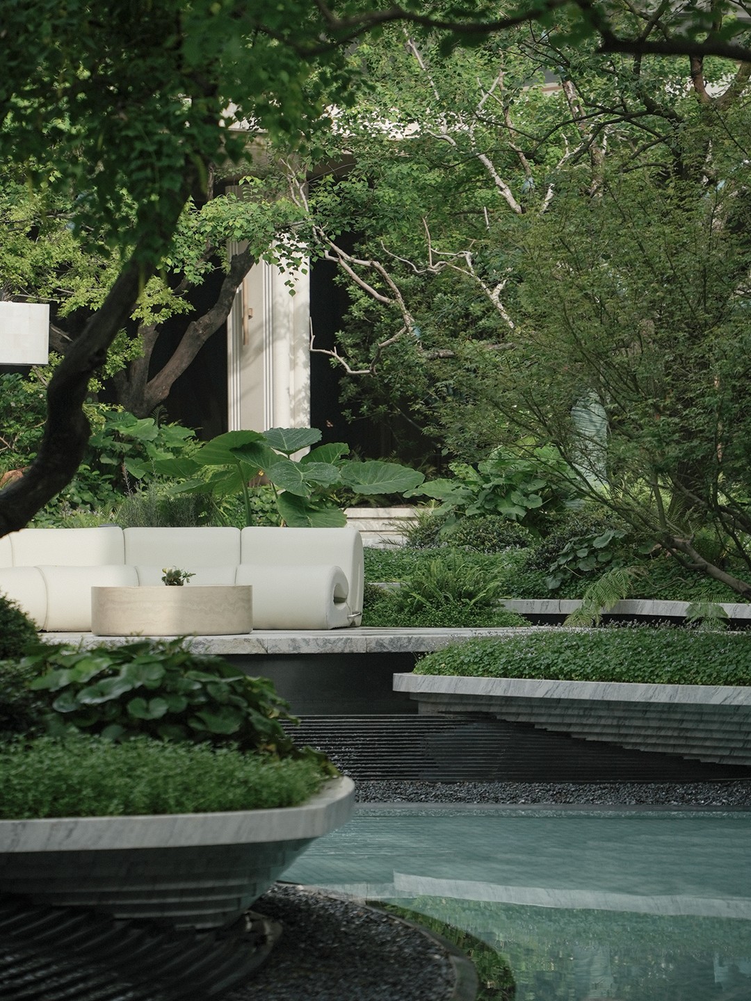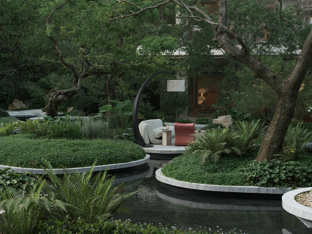 转角处皆是生活的温度,静置的景石仿佛在喃喃低语着场地的故事,在光影与空间中,描摹出理想生活的轮廓。