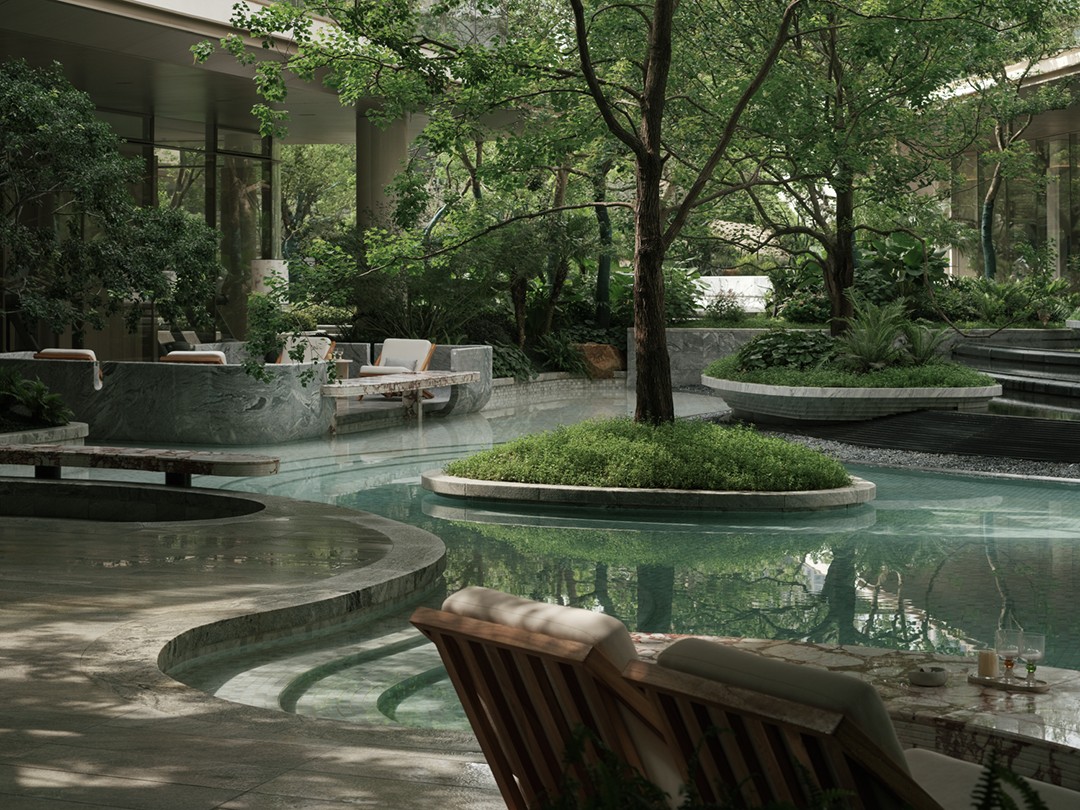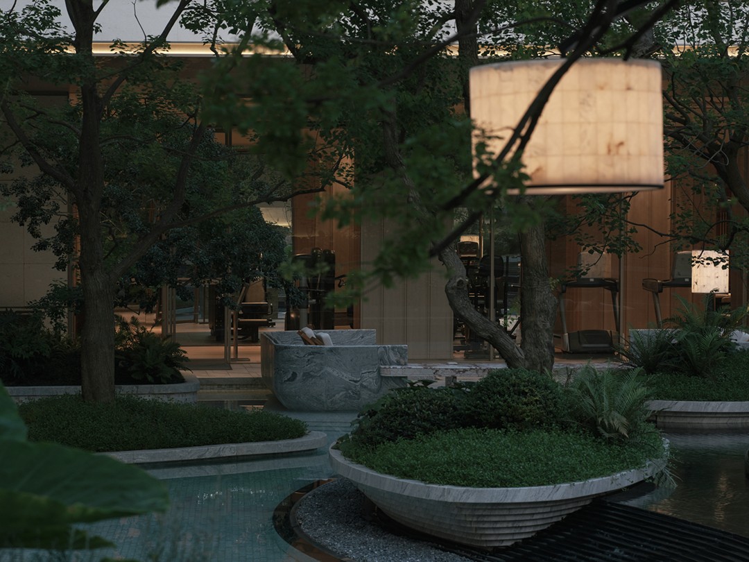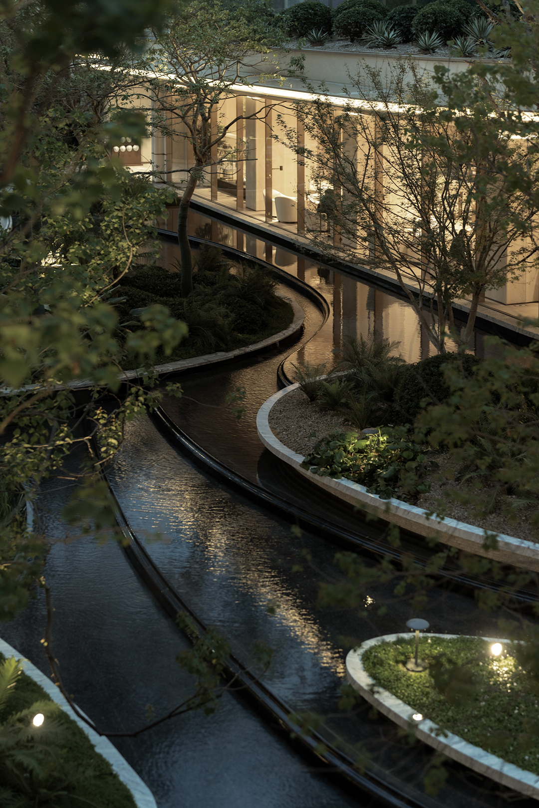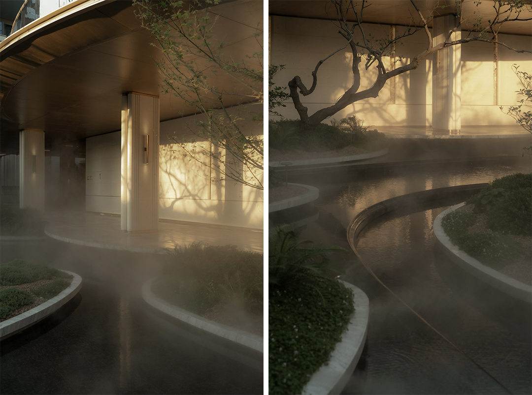 Symmetrical waterscapes and artistic walls enhance the sense of ritual when returning home. The foyer and the corridors on both sides connect to the commercial area to create a light luxury resort-style urban interface. On one side is the bustling Changsha, and on the other side is a prosperous city. Here we have built an exclusive luxury space where ideal life begins.