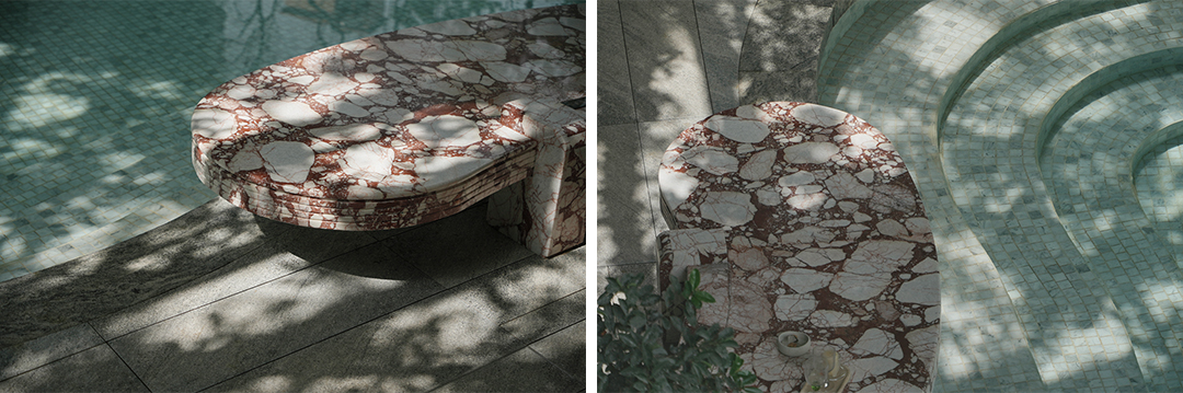 The Babeli Red marble curved custom-made waterfront bar counter has a warm and elegant color and graceful natural texture. Here, nature and life are intertwined, and in the distant and ethereal embrace of forests and water, you can enjoy the quiet and leisurely "island residence secret realm".