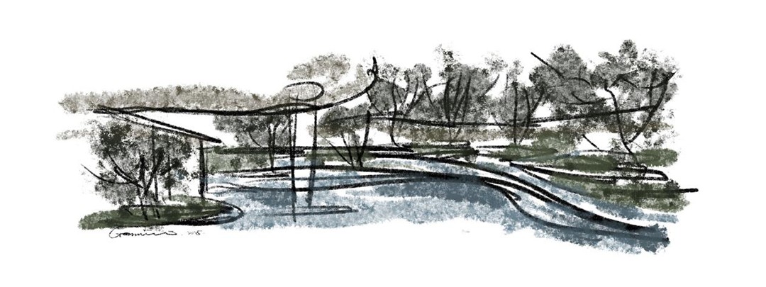 艺术汀步连接水上休闲平台,宛如漂浮于水面之上。