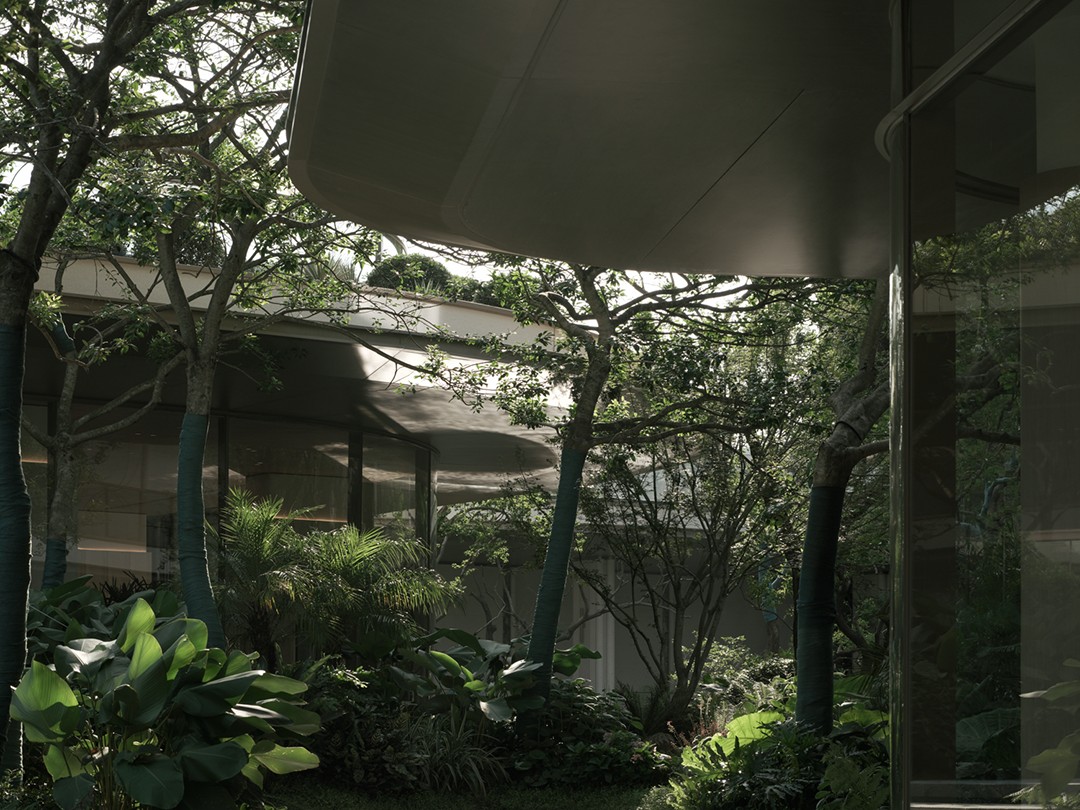 透过玻璃幕墙可以静观水林空间的全貌,无边界的景观渗透感,增加场地的度假气质。