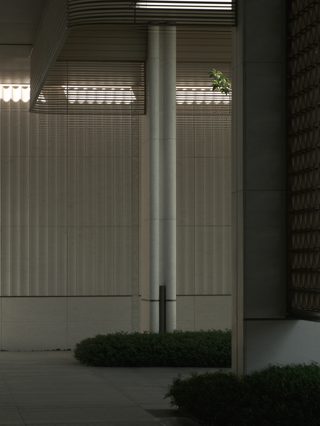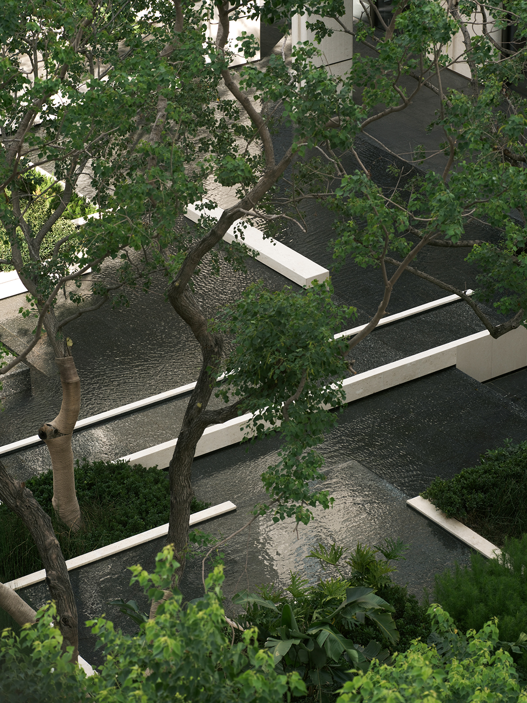 The penetration of the corridor system creates a tropical and comfortable corridor experience.