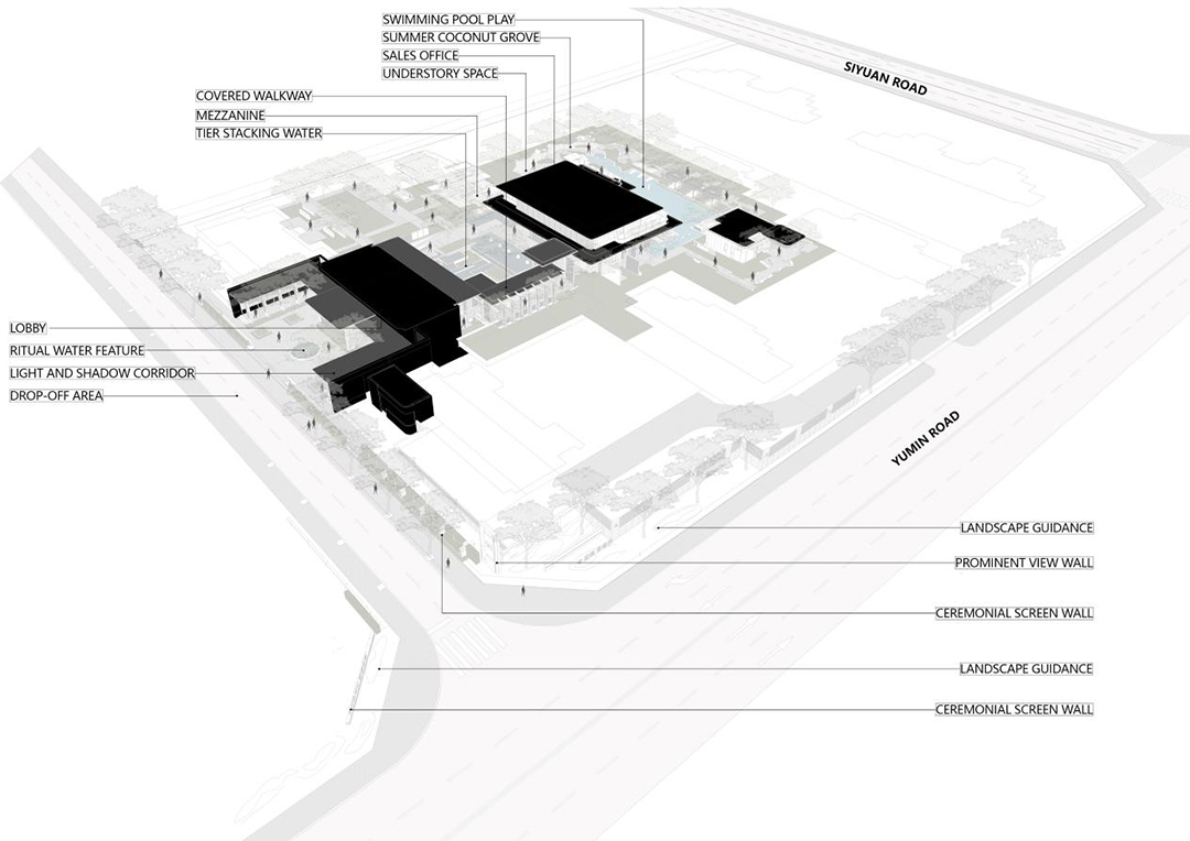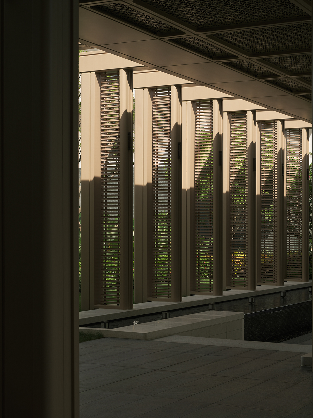 连廊系统的渗透,创造热带舒适的廊下体验。