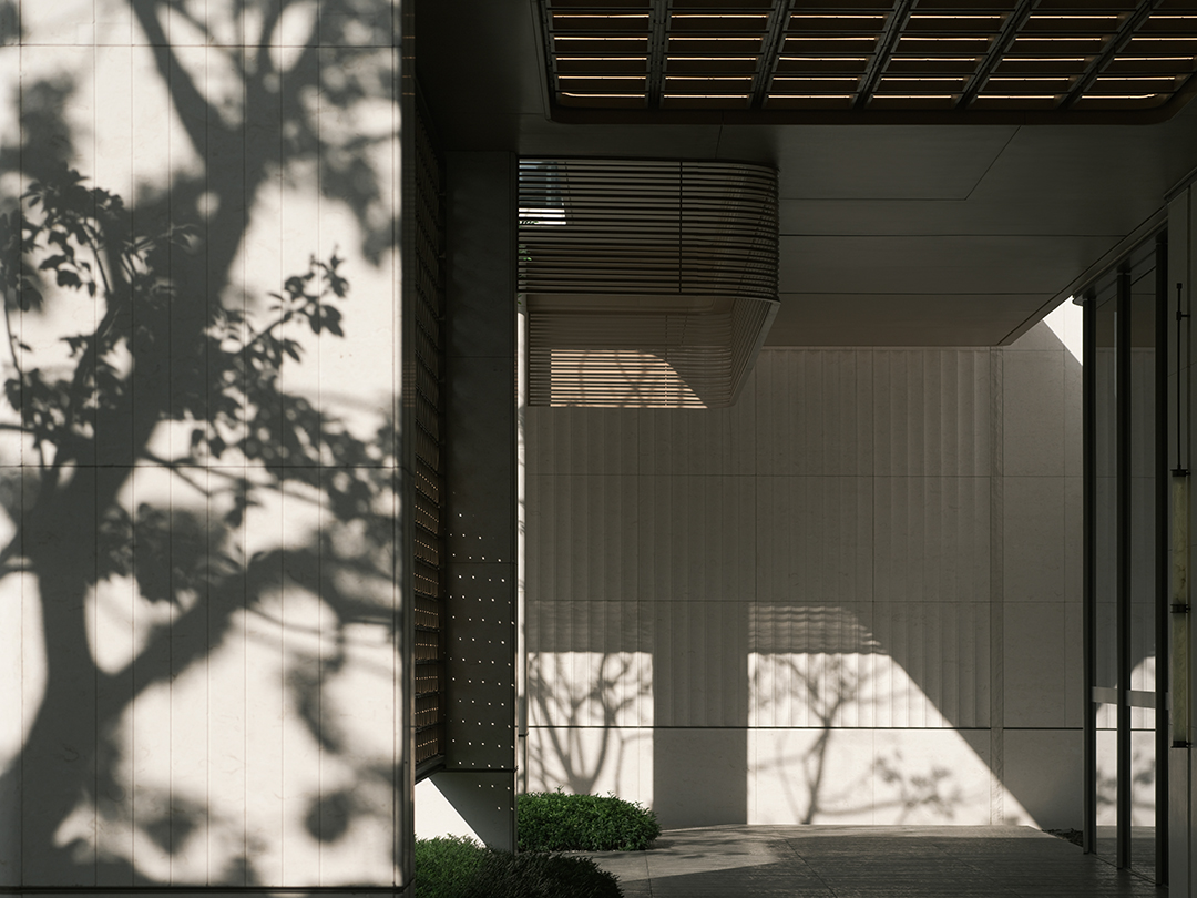 舒展的屋檐连通建筑与景观,形成一系列富有节奏的半室外空间。