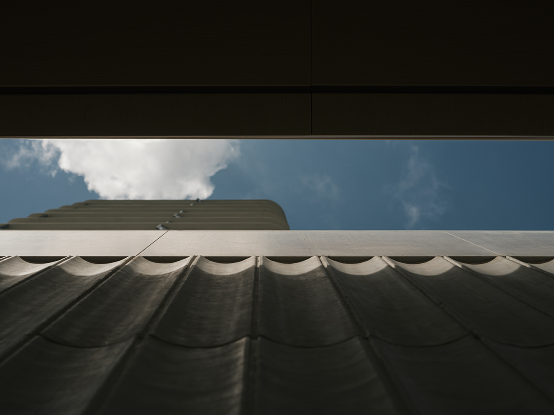The stretched eaves connect the building and the landscape, forming a series of rhythmic semi-outdoor spaces.