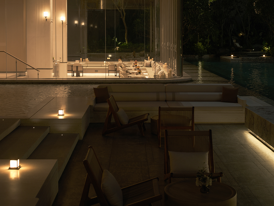 夜幕降临,水面灯光浮动,水吧低语交汇,一场热带海岛的度假体验悄然展开。