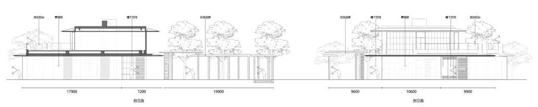 The backstage space is based on "socializing under the forest" and constructs a multifunctional overhead layer and green space.