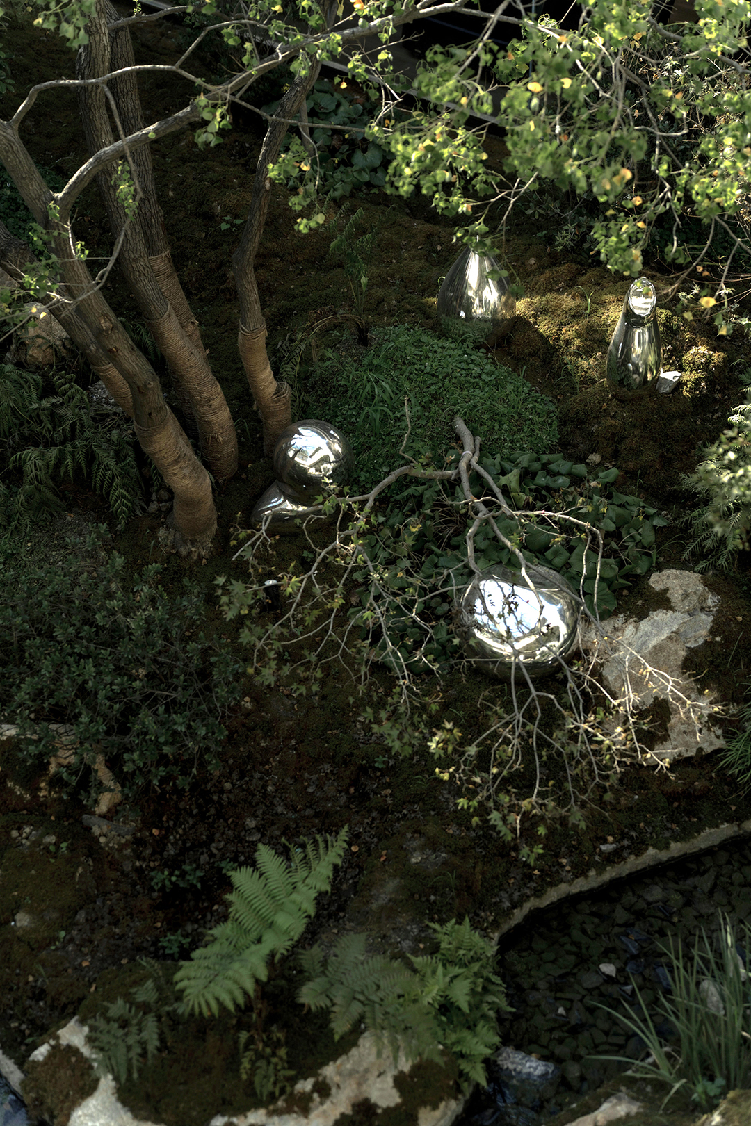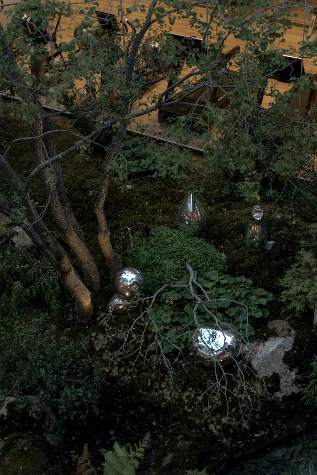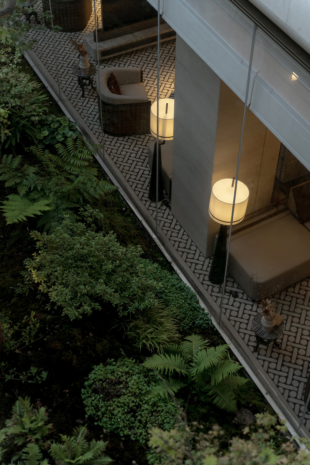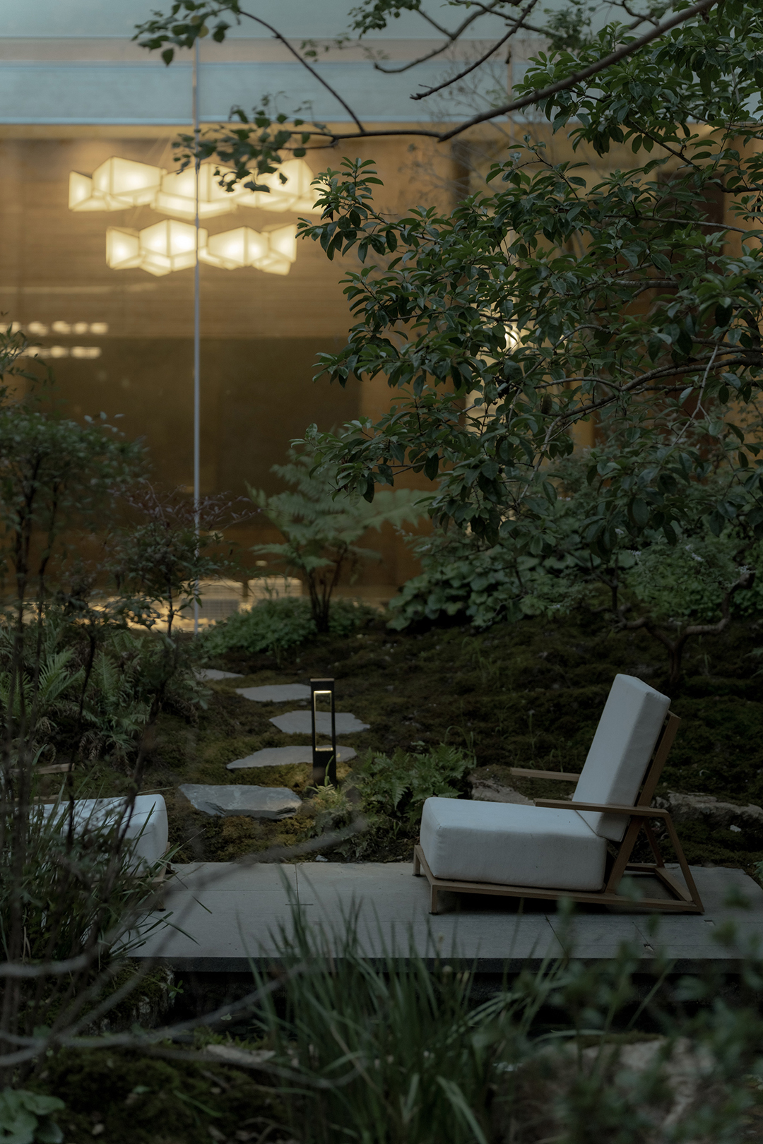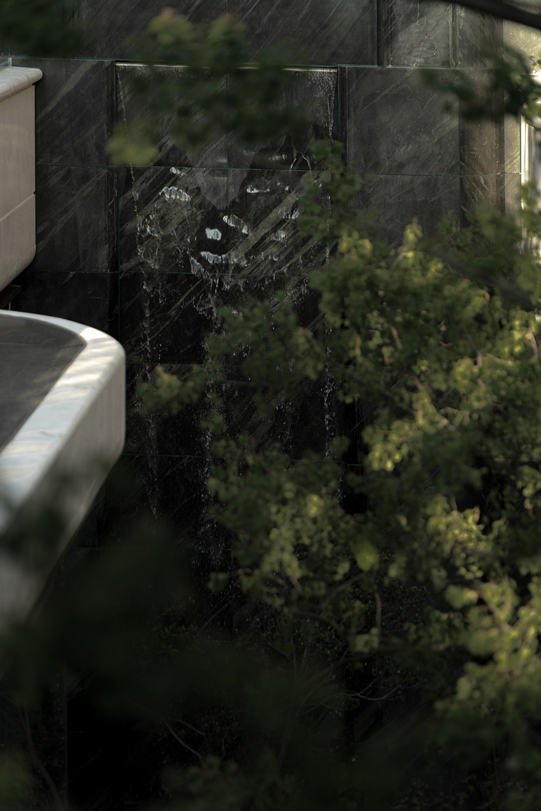 The Venato stone, the texture of bronze-colored aluminum panels, and the nearly 200-year-old famous Japanese maple with spreading branches form a visual echo, bringing endless shade to those who stay here.