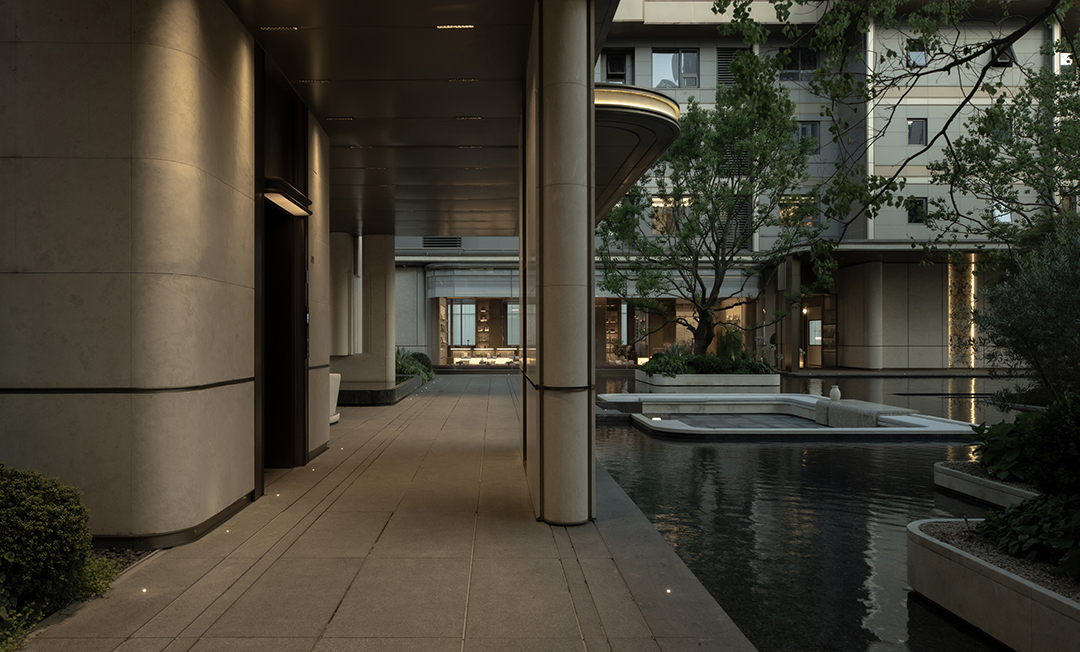建筑与景观互为渗透,廊下空间与水面交错相连,丰富观赏动线。