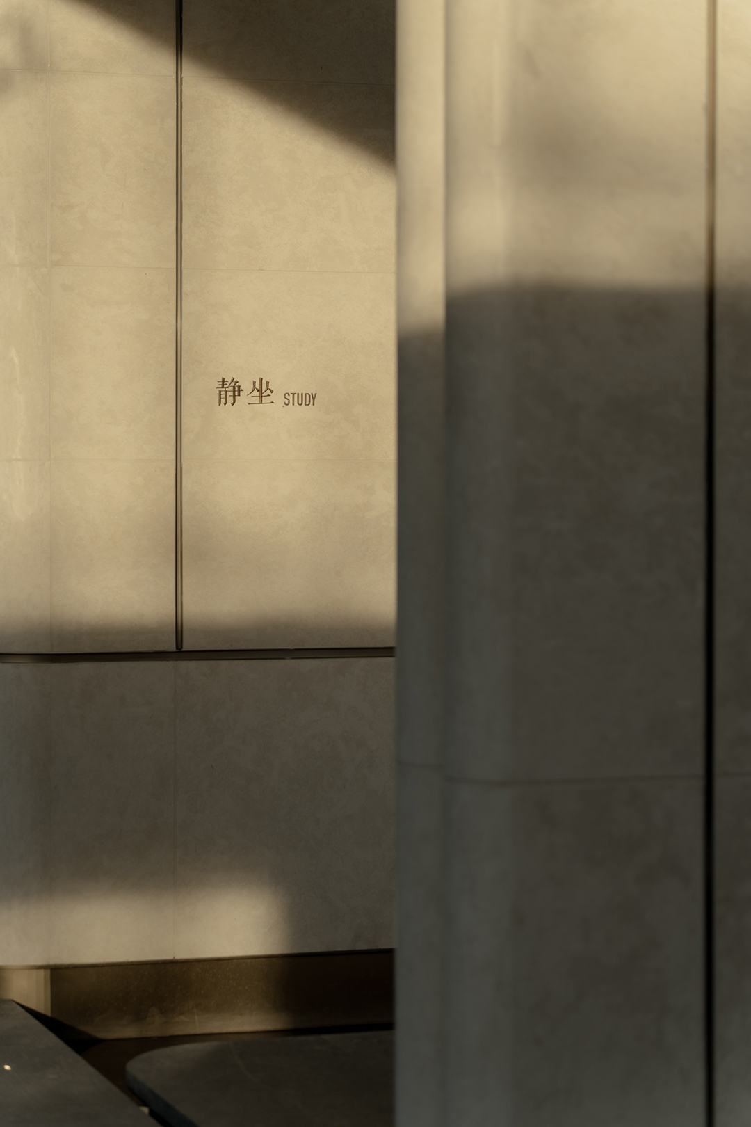 墙面采用锻纹香槟金铝板与沉香米黄石材做不同肌理变化,整体温润低调而不失精致感。